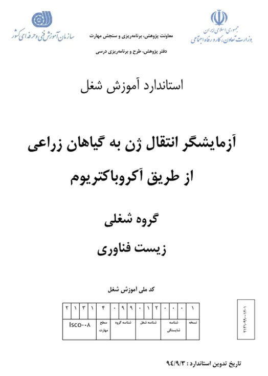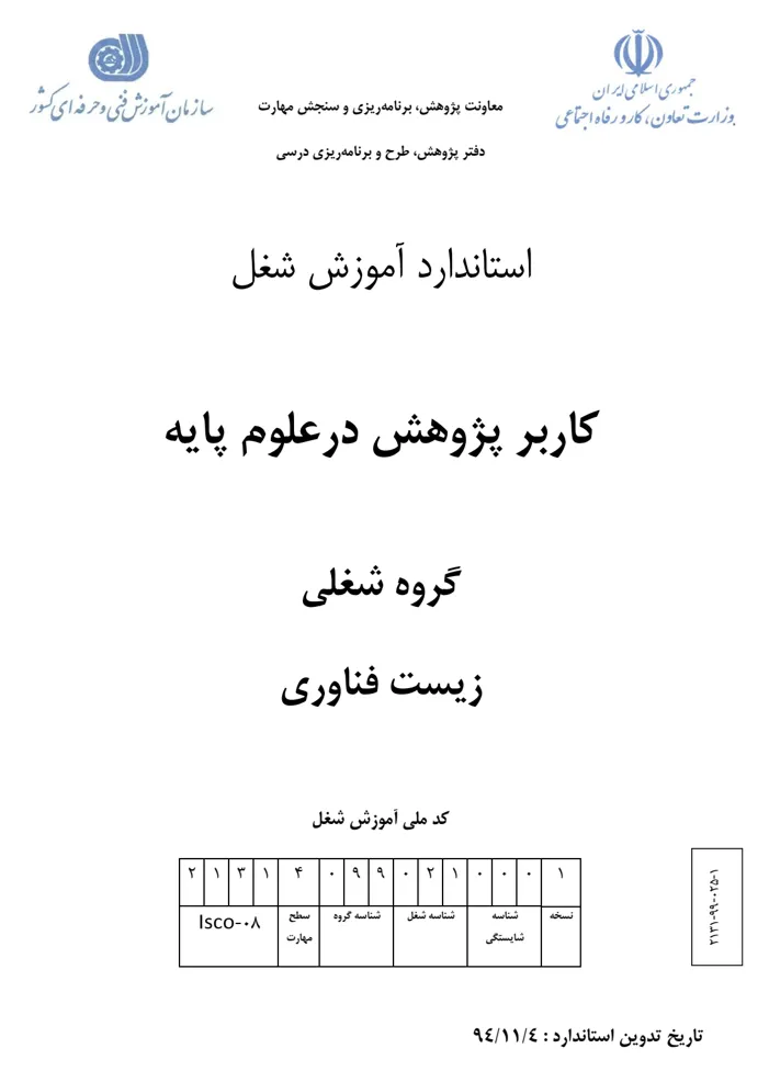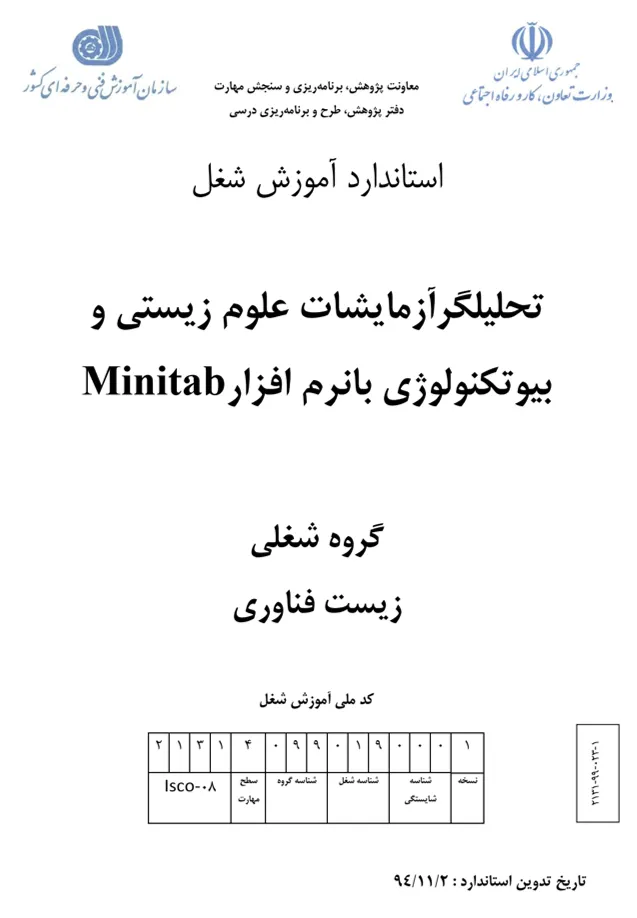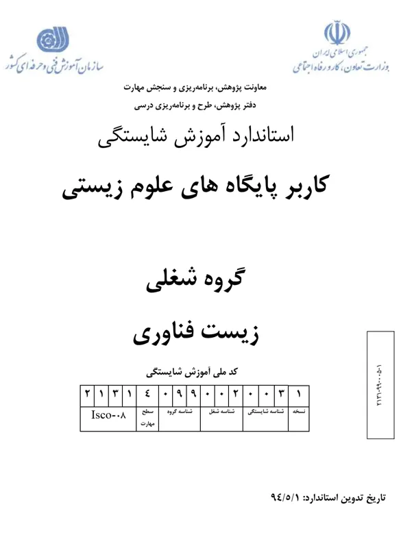 “Advanced Skill Educational Standards” belong to Iran Technical and Vocational Training Organization (TVTO), which is under the supervision of the Ministry of Labor and Social Welfare. These standards are categorized into two main types based on the level of profession, pre-requirements, and duration of the standard. “Occupational” type needs some pre-requirements and has a long-hour course of more than 100 hours. The shorter standards needing little or no prerequisites are so-called “Competence“.